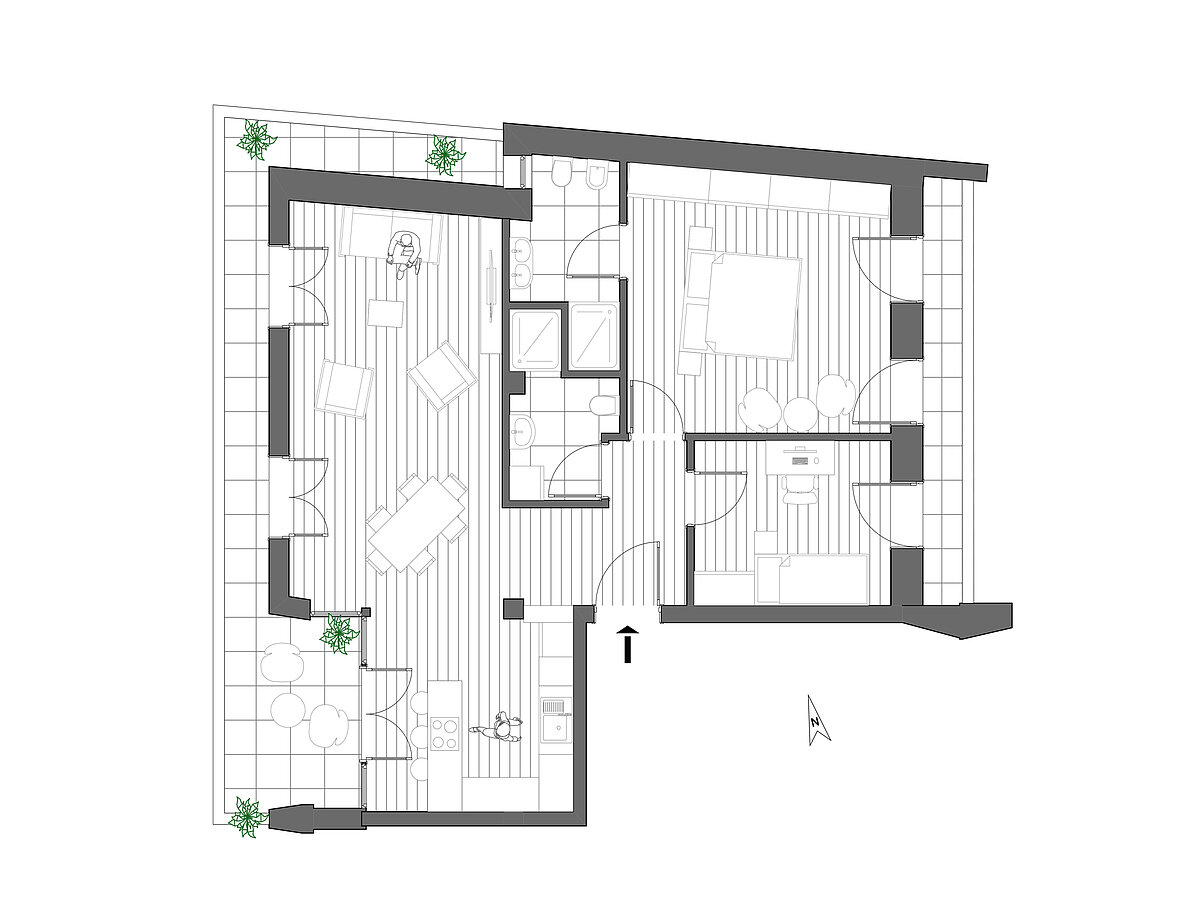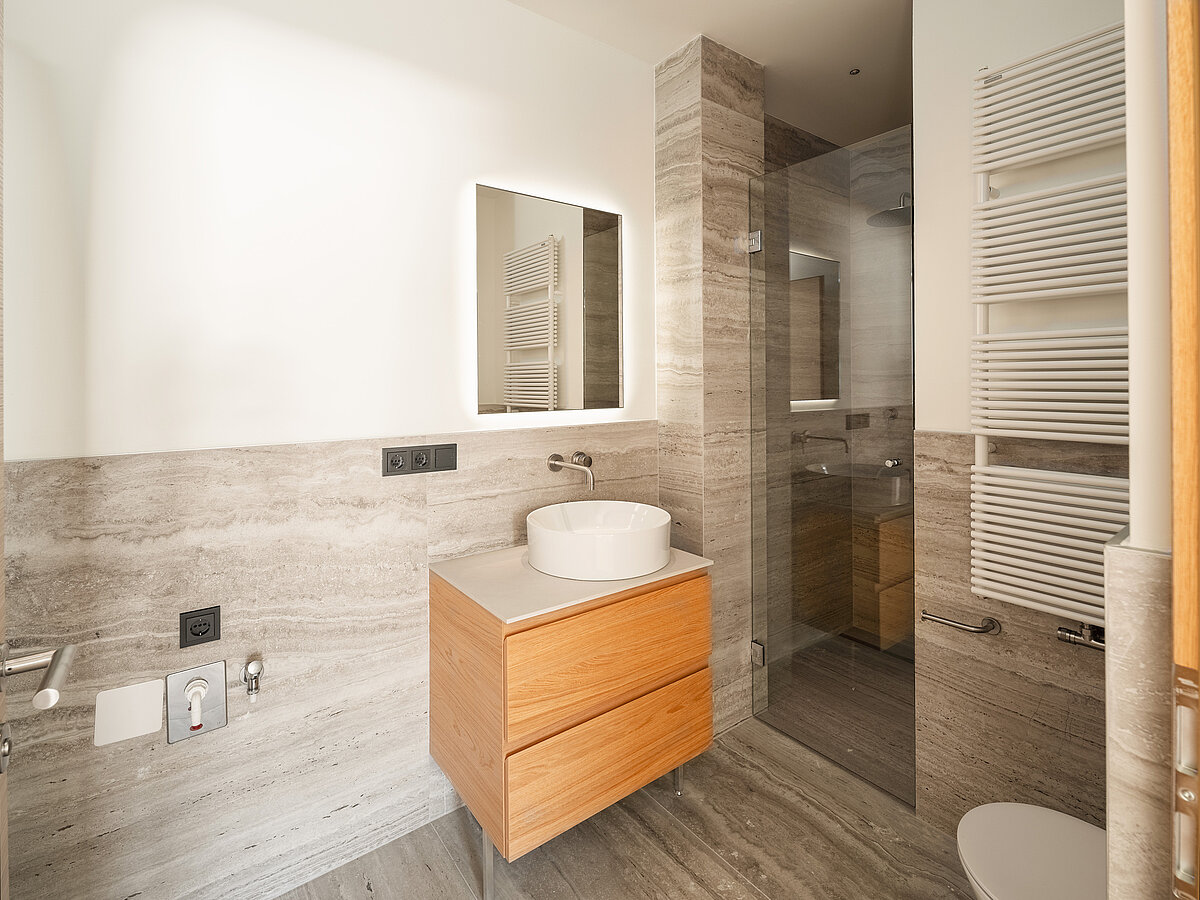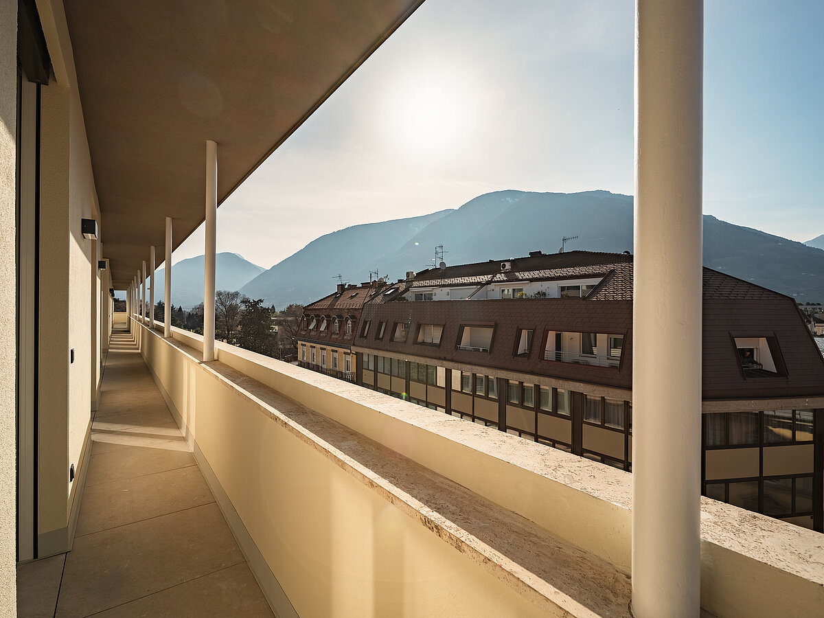 Das Sparkassenhaus steht für exklusives Wohnen im Herzen von Meran und vereint zeitlose Architektur mit höchstem Qualitätsanspruch. Die neu errichteten Wohnungen überzeugen durch klare Linien, edle Materialien und ein harmonisches Zusammenspiel von Design und moderner Technik. Großzügige Fensterflächen schaffen lichtdurchflutete Räume mit eindrucksvollen Ausblicken über die Stadt. Fußbodenheizung, moderne Klimatechnik zum Kühlen und Heizen sowie individuell regelbare Temperaturzonen sorgen ganzjährig für ein angenehmes Wohngefühl. Ein intelligentes Smart-Home-System ermöglicht die zentrale Steuerung von Heizung, Beleuchtung und Raffstores. Terrassen mit begrünten Pflanzbereichen und integrierter Bewässerung unterstreichen den exklusiven Charakter, während barrierefreie Zugänge und ein Lift bis in alle Wohngeschosse zusätzlichen Komfort bieten.