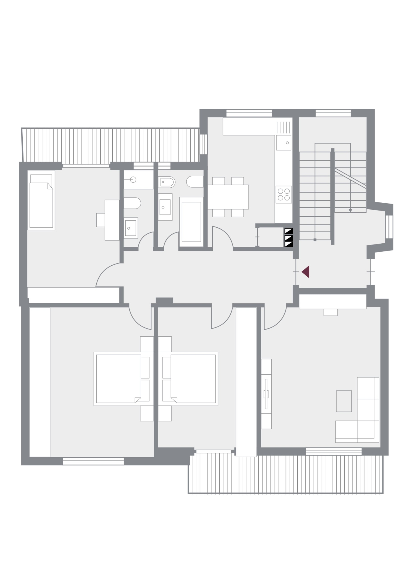 Die Wohnung liegt im obersten Stockwerk eines gepflegten Mehrfamilienhauses und ist bequem mit dem Aufzug erreichbar. Hier oben, über den Dächern der Kurstadt, genießen Sie wohltuende Ruhe und finden ein Refugium zum Ankommen, Durchatmen und Genießen.