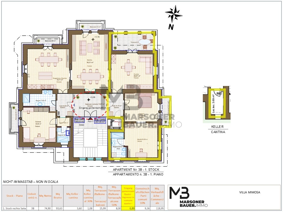 Information: die Wohneinheiten Nr. 2 im Hochparterre und Nr. 3 im 1. Stock werden als gesamte Etagenwohnungen angeboten, es ist wie laut Verkaufsplan jedoch vorgesehen, diese Wohnungen intern über die Eingangshalle in 2 Wohnungen zu unterteilen. Nähere Details und Informationen dazu gerne auf Anfrage.