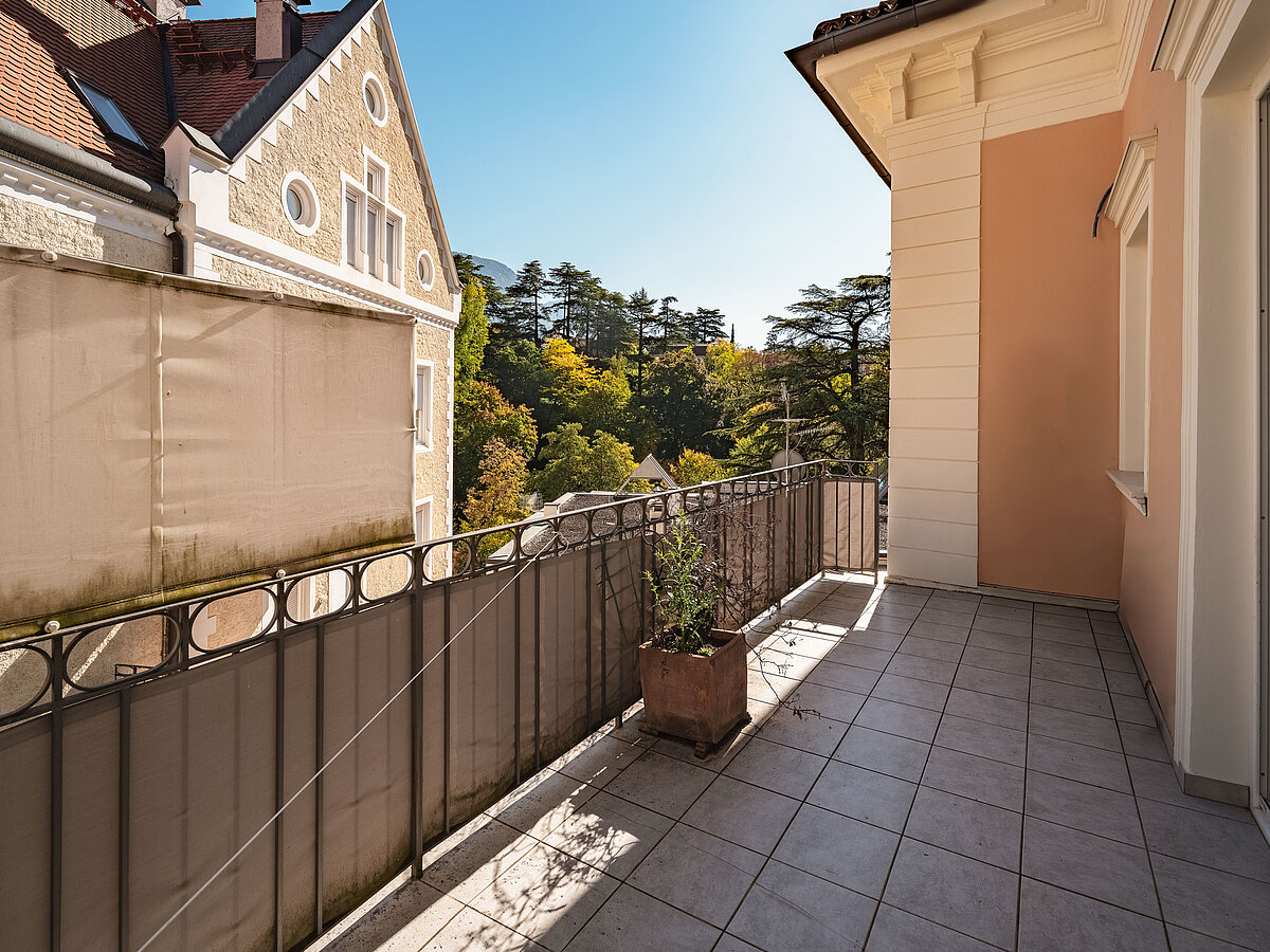 Diese besondere, elegante Altstadtwohnung in Meran vereint historischen Charme mit modernem Wohnkomfort. Sie befindet sich im dritten Stock mit Aufzug eines geschichtsträchtigen Neorenaissance-Altbaus, der Ende des 19. Jahrhunderts errichtet und später als renommiertes Hotel Cremona Ritz genutzt wurde.