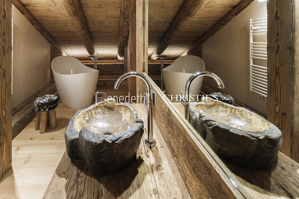 Nicht weit entfernt von der Corso Italia, der bekannten Einkaufsstraße und dem pulsierenden Zentrum des gesellschaftlichen Lebens von Cortina, bietet die Immobilie eine Wohnfläche von 170 m², die sich über zwei Etagen eines charmanten Berghalbschalets erstreckt.