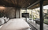 Der Schlafbereich umfasst drei großzügige Schlafzimmer, jeweils mit Bad en suite und direktem Zugang zum Garten, und gewährleistet damit absolute Privatsphäre sowie eine kontinuierliche Verbindung zur umgebenden Natur.