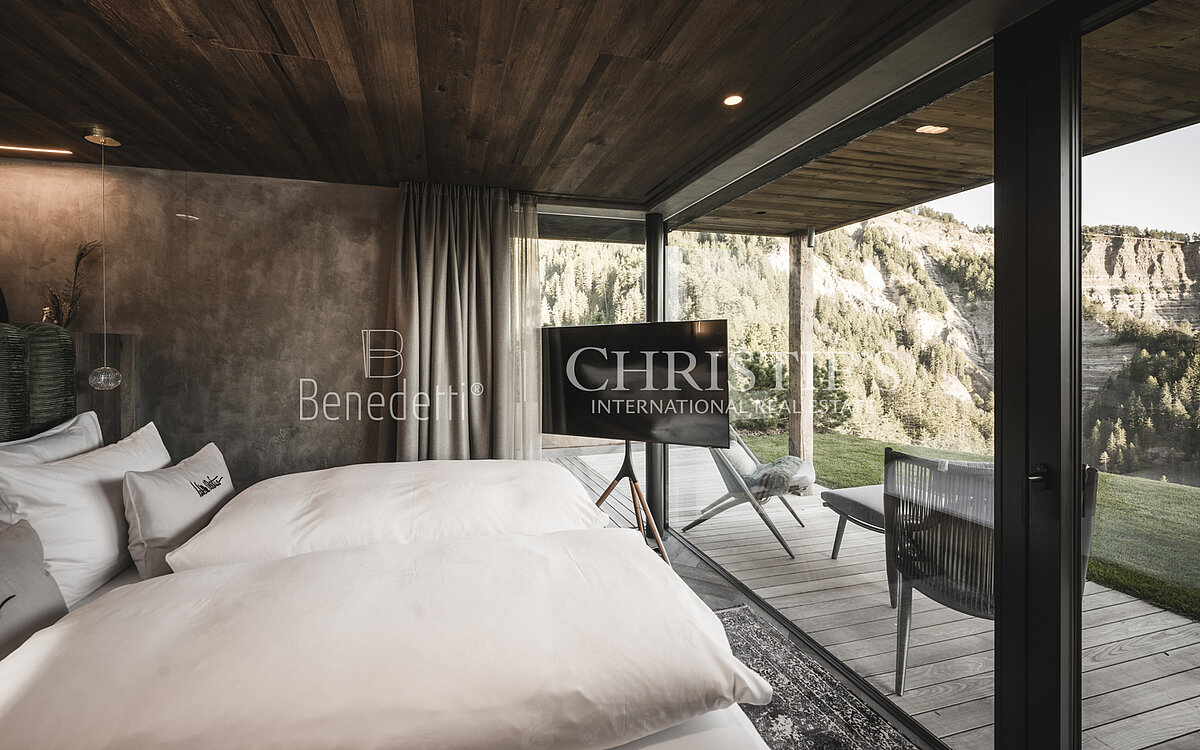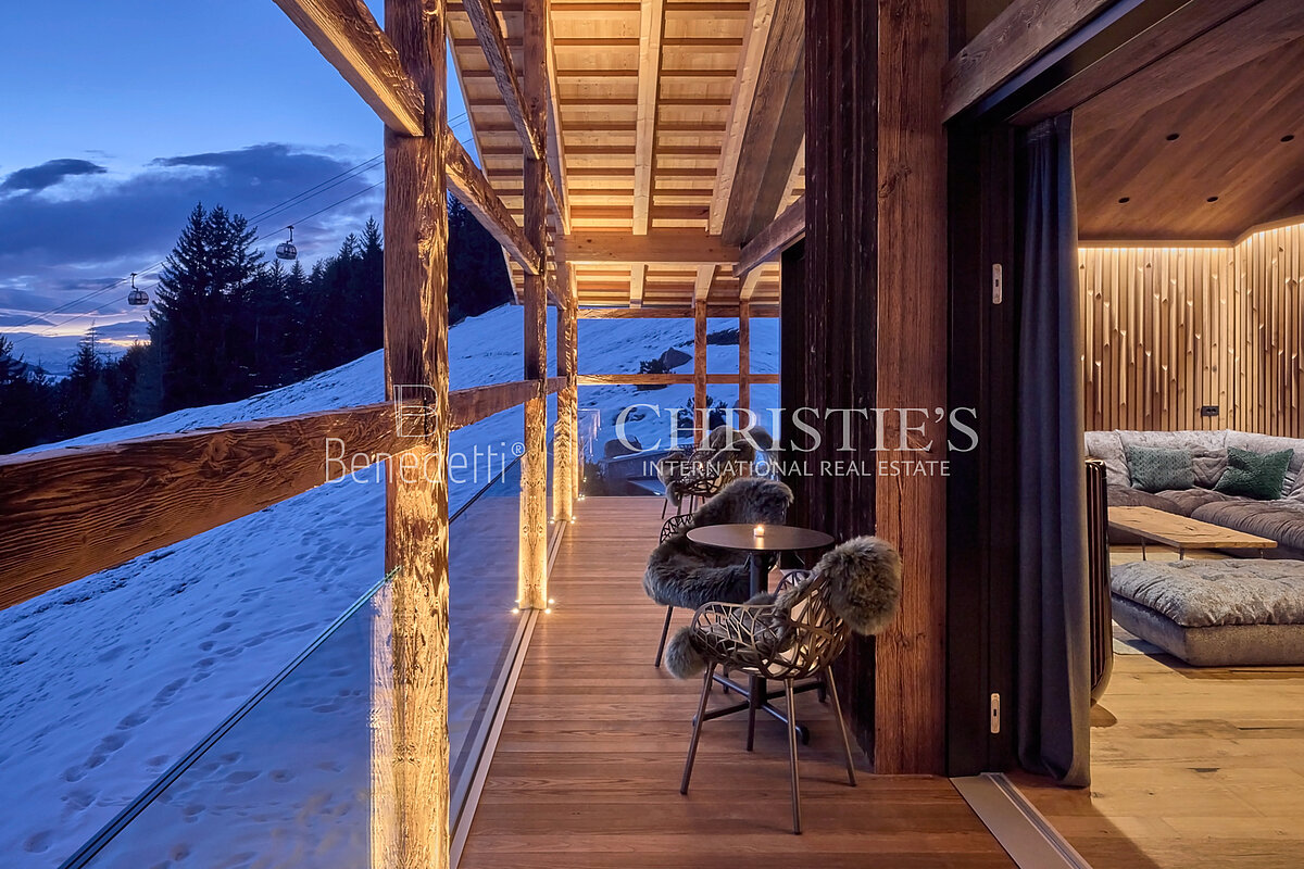 Eingebettet in die atemberaubende Kulisse des Grödentals verkörpert dieses luxuriöse Ski-in/Ski-out-Chalet die Essenz zeitgenössischer alpiner Eleganz – ein exklusiver Rückzugsort für all jene, die höchsten Wohnkomfort mit direktem Zugang zu den Skipisten verbinden möchten.