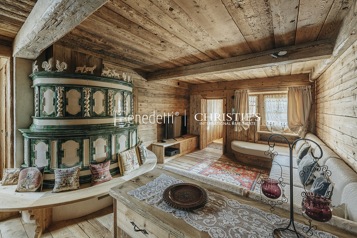 In einer typischen Ampezzaner Residenz, im panoramaverwöhnten Alverà in Cortina d'Ampezzo, steht diese herrliche Luxuswohnung zum Verkauf, die im typischen alpinen Stil eingerichtet ist und über einen Garagenstellplatz verfügt.