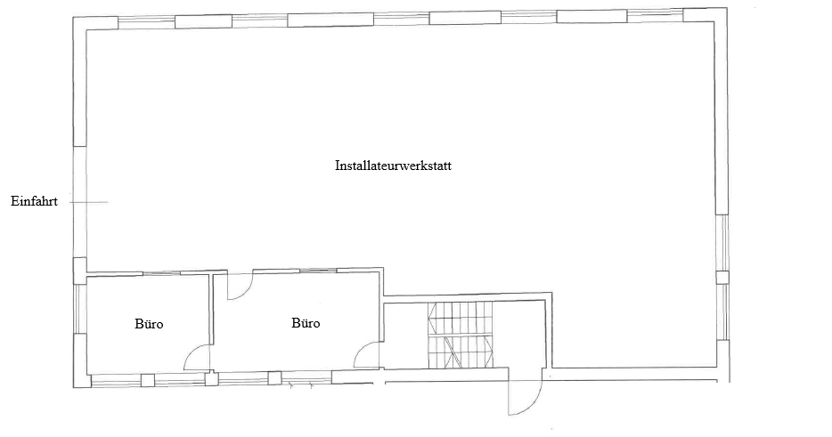 Die Halle im Erdgeschoss verfügt über eine Bruttofläche von ca. 245 m² bei einer Raumhöhe von ca. 3,20 m.