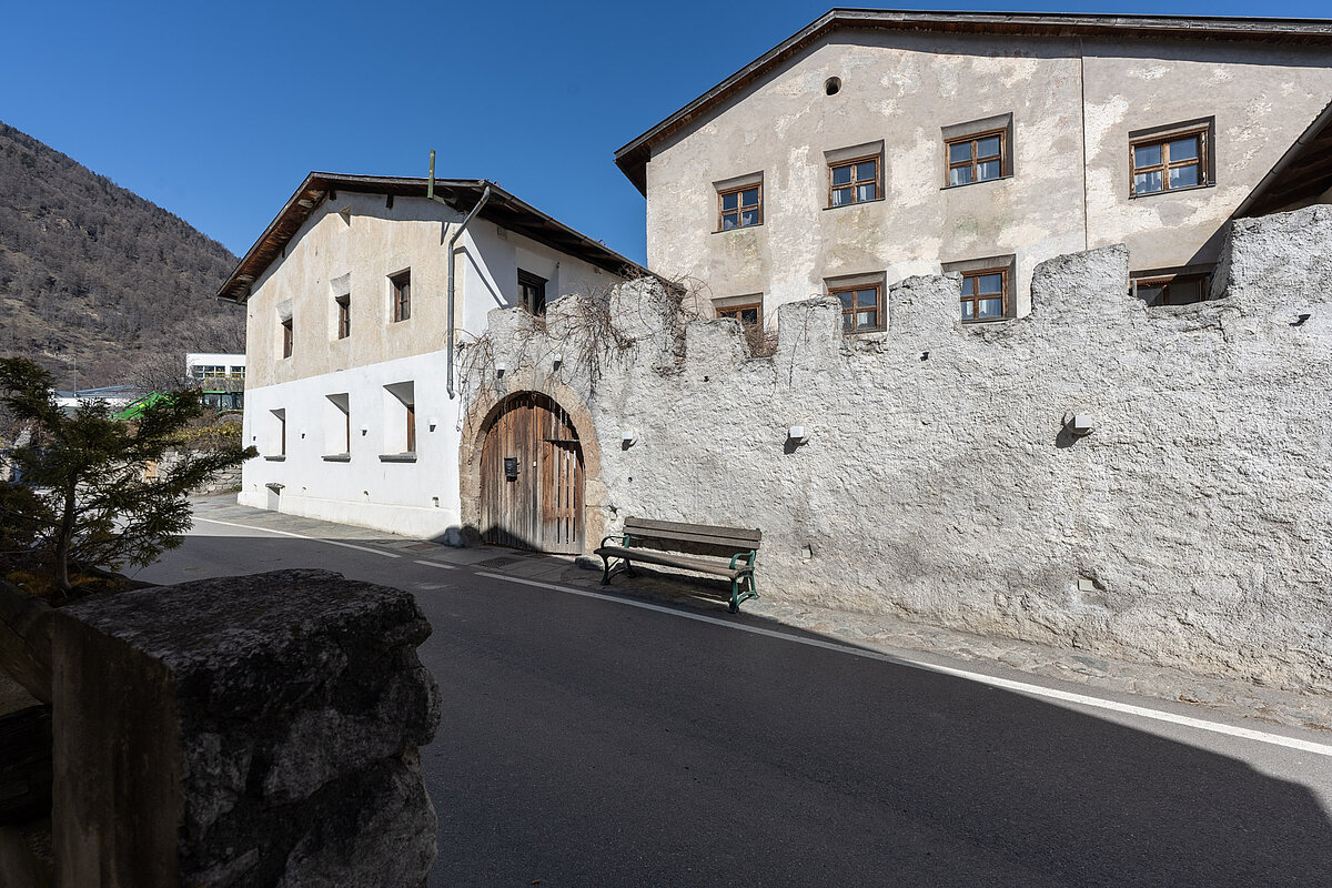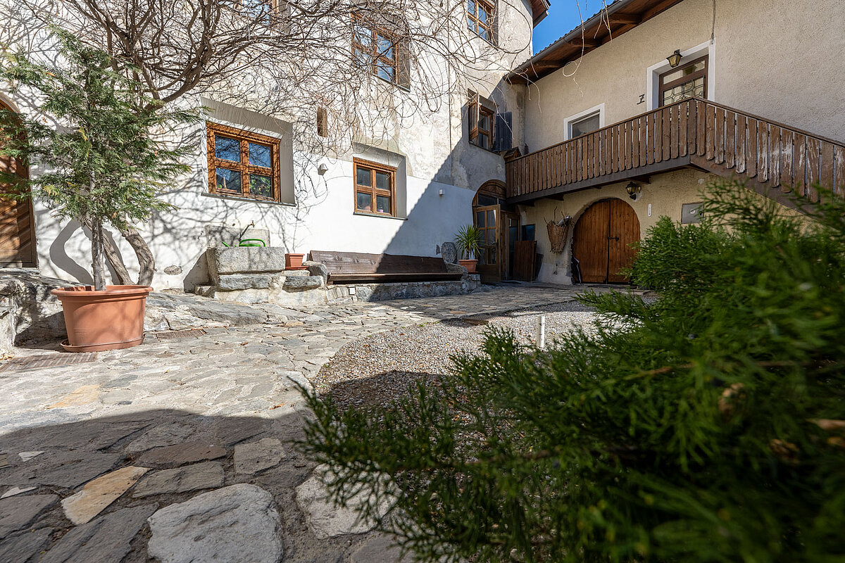 Das Anwesen besteht aus einem Haupthaus mit einem schönen Innenhof, einem Nebenhaus sowie Wirtschaftsgebäude und großer Grundfläche hinter dem Haus mit Aussicht über den oberen Vinschgau. Die gesamte Grundstücksfläche des Ansitzes beträgt 2.340 m² und weist ein Bauvolumen von ca. 3.510 m³ auf.