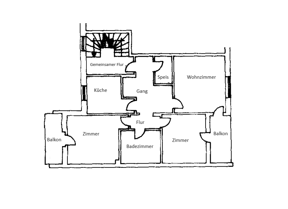 Die Wohnung befindet sich im 1. Obergeschoss eines Dreifamilienhauses und besteht aus Gang, Speise, Küche, Wohnzimmer, 2 Schlafzimmern, sowie einem Badezimmer.