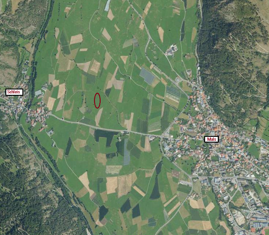 Zum Verkauf steht ein landwirtschaftliches Grundstück in der Nähe der Ortschaft Schleis, in den sogenannten "Malser Guldareides".