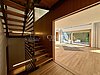 Jedes Detail ist durchdacht: maßgefertigte Einbaumöbel aus massiver Eiche, ein harmonisches Materialkonzept und Sichtachsen, die Architektur erlebbar machen. Nichts wirkt zufällig, alles folgt einer stringenten gestalterischen Idee – und das macht dieses Haus zu einem Statement.