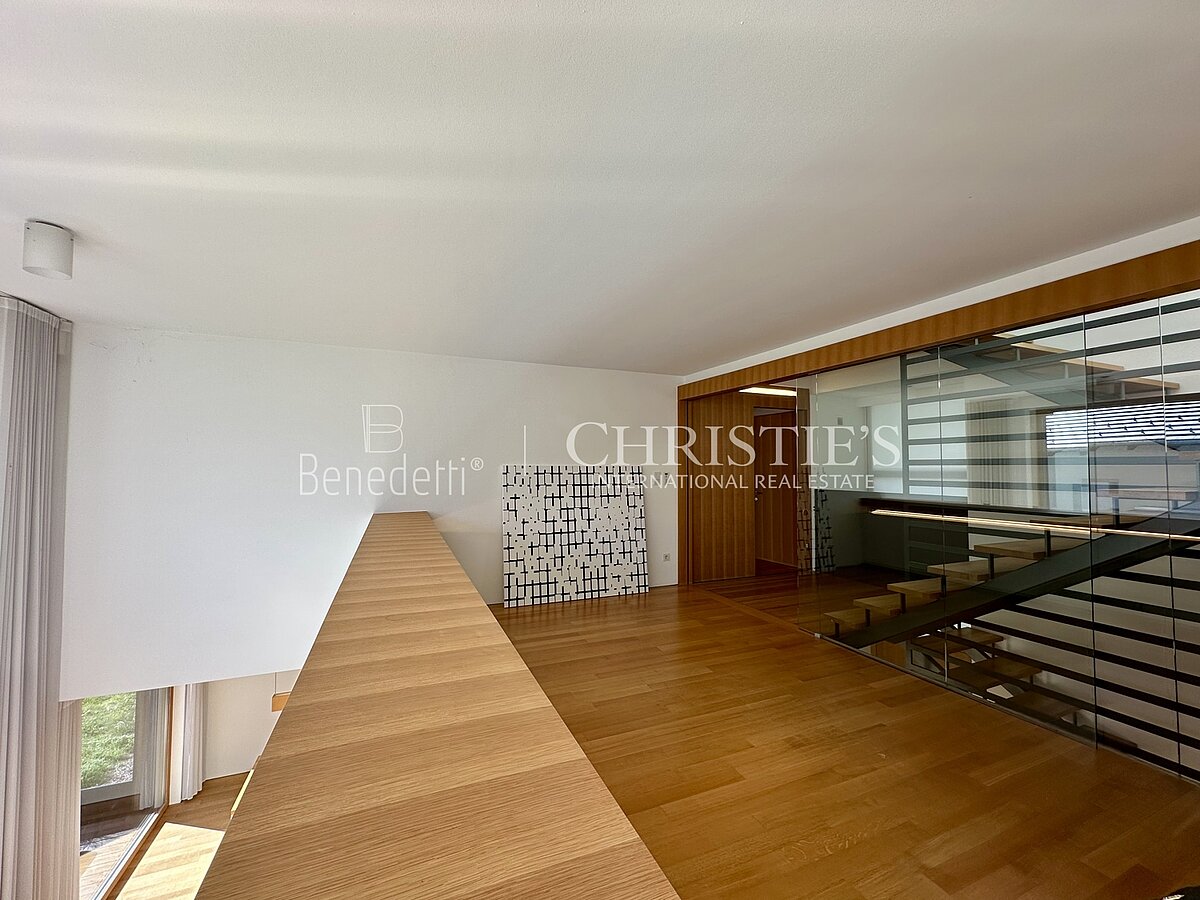 Obergeschoss: Master-Bedroom mit begehbarem Schrank und en suite Badezimmer, offene Bibliothek/Galerie mit Atrium