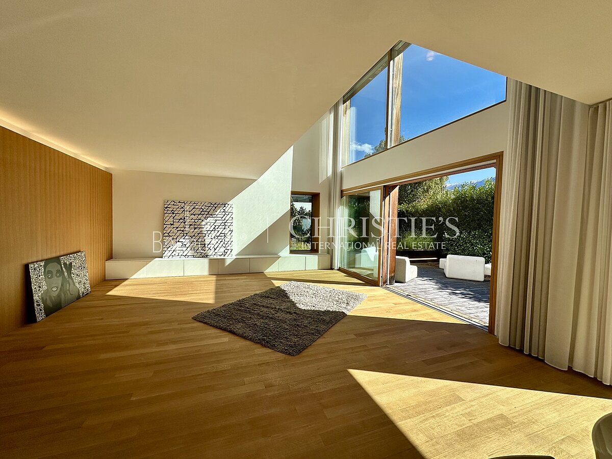 Die klare Linienführung, die außergewöhnlichen Raumhöhen und die raumhohen Verglasungen inszenieren das Licht wie in einer Galerie. Innen und Außen verschmelzen zu einem offenen Raumgefüge, das Großzügigkeit ausstrahlt und gleichzeitig Geborgenheit schenkt.