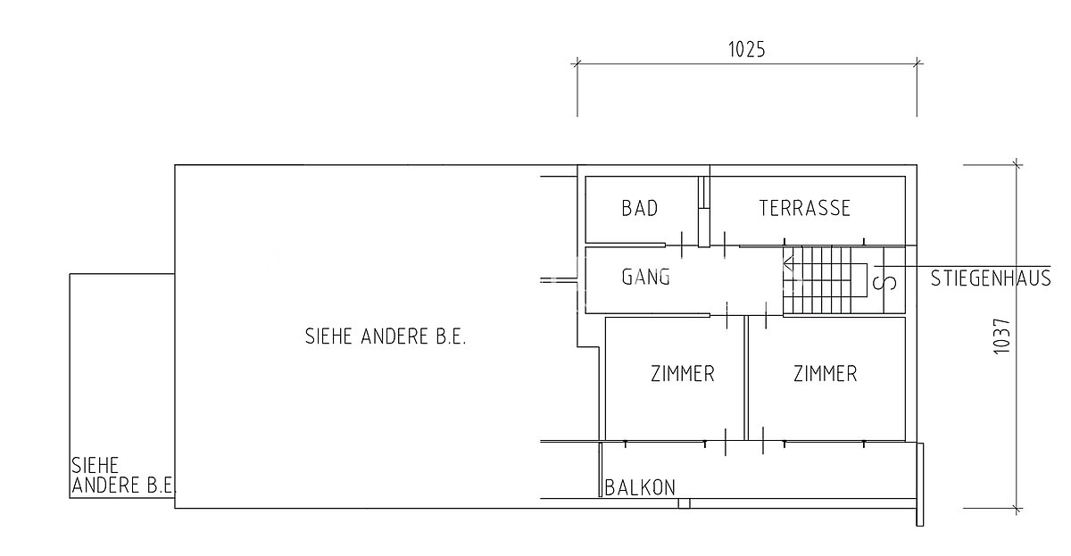 Dachgeschoss: zwei Schlafzimmer mit Balkon, Badezimmer, Gang sowie eine private Dachterrasse