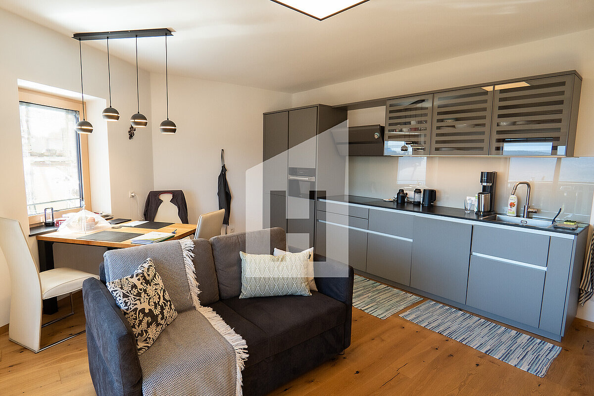Beheizt wird die Wohnung autonom über Gas, zusätzlich gibt es Wandheizungen. Die Küche ist hochwertig ausgestattet und verfügt über Miele-Geräte. Vom Balkon hat man einen Panoramablick.
