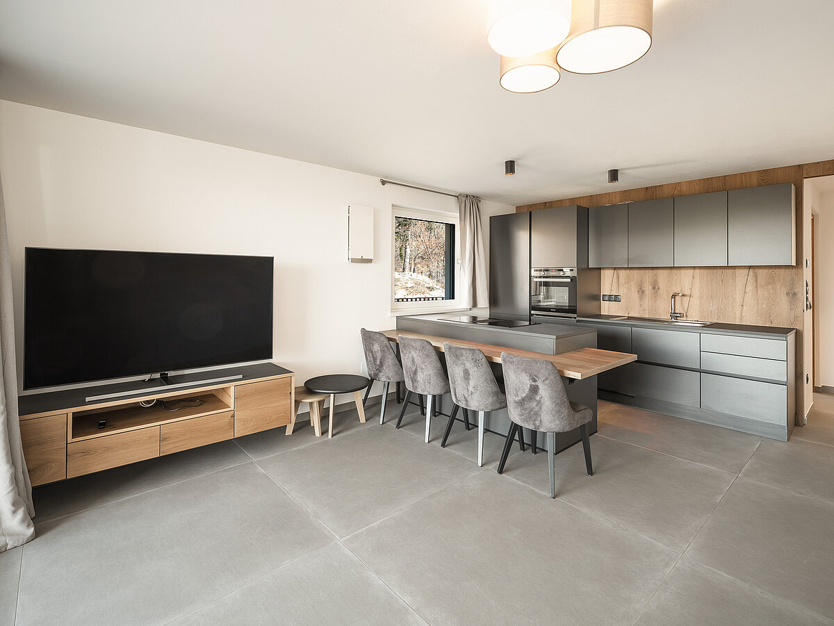 Die Wohnung ist optimal an öffentliche Verkehrsmittel angebunden und liegt nur etwa 10 Minuten vom Skigebiet sowie rund 20 Minuten von Meran entfernt.