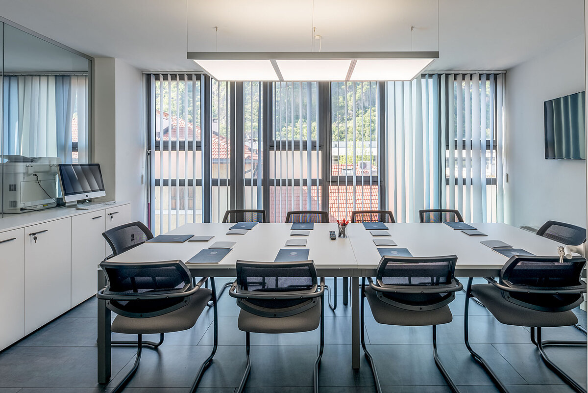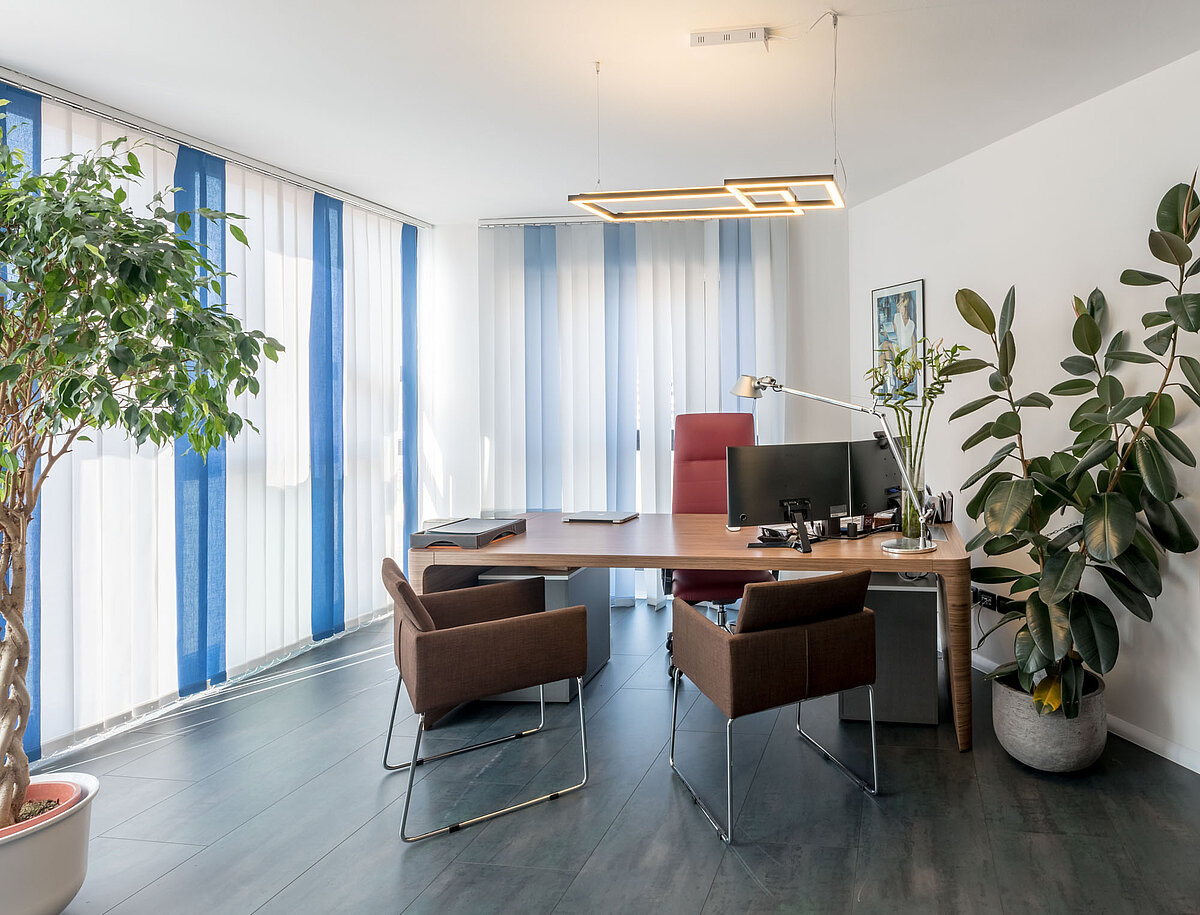 Das Büro wurde kürzlich renoviert, einschließlich der Anbringung von Sonnenschutzfolien sowie der Beseitigung architektonischer Barrieren. Die Räume sind den ganzen Tag über sehr hell und bieten einen offenen, angenehmen Ausblick.