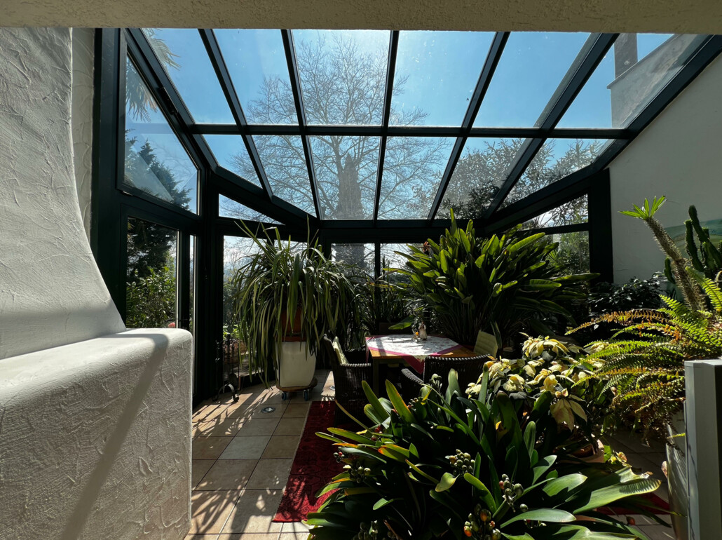 - Erdgeschoss: Eingang, Wohnzimmer, Küche, Bügelzimmer, Badezimmer, Wintergarten, Terrasse, Privatgarten und Garage
