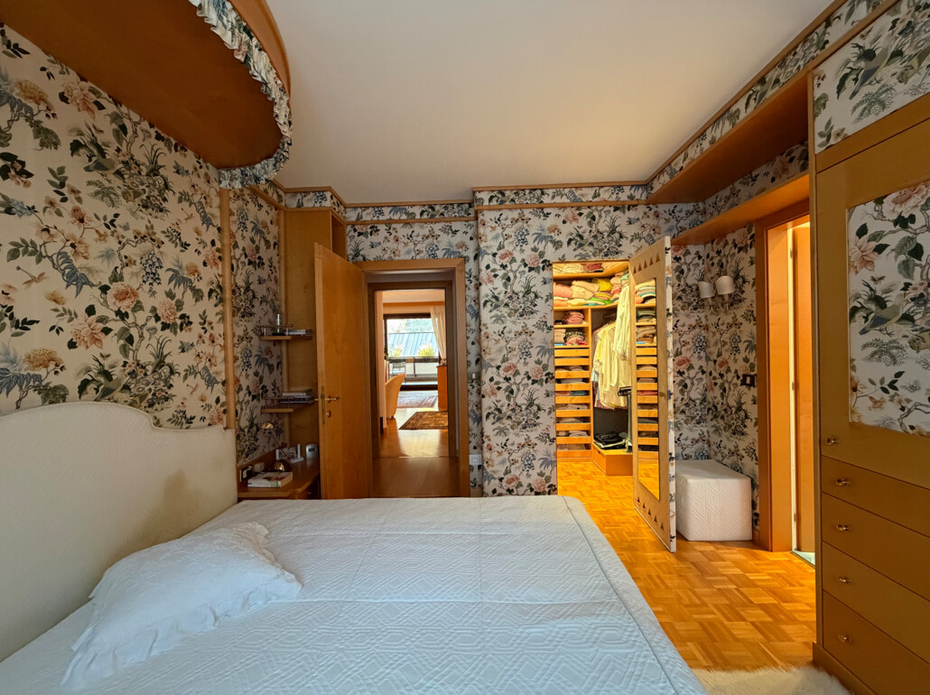 Die Wohnung wurde von einem Innenarchitekten mit maßgefertigten Einbauten ausgestattet und überzeugt durch die Verwendung hochwertiger Materialien sowie elegant integrierter Holzmöbel. Sie wird äußerst sauber gehalten und mit großer Sorgfalt gepflegt, was den hervorragenden Gesamtzustand der Immobilie widerspiegelt.