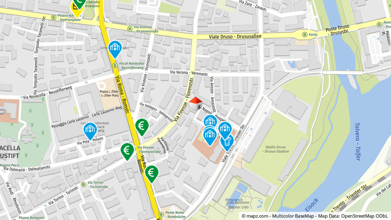 In nächster Nähe befinden sich eine Bar und andere kleinere Betriebe.