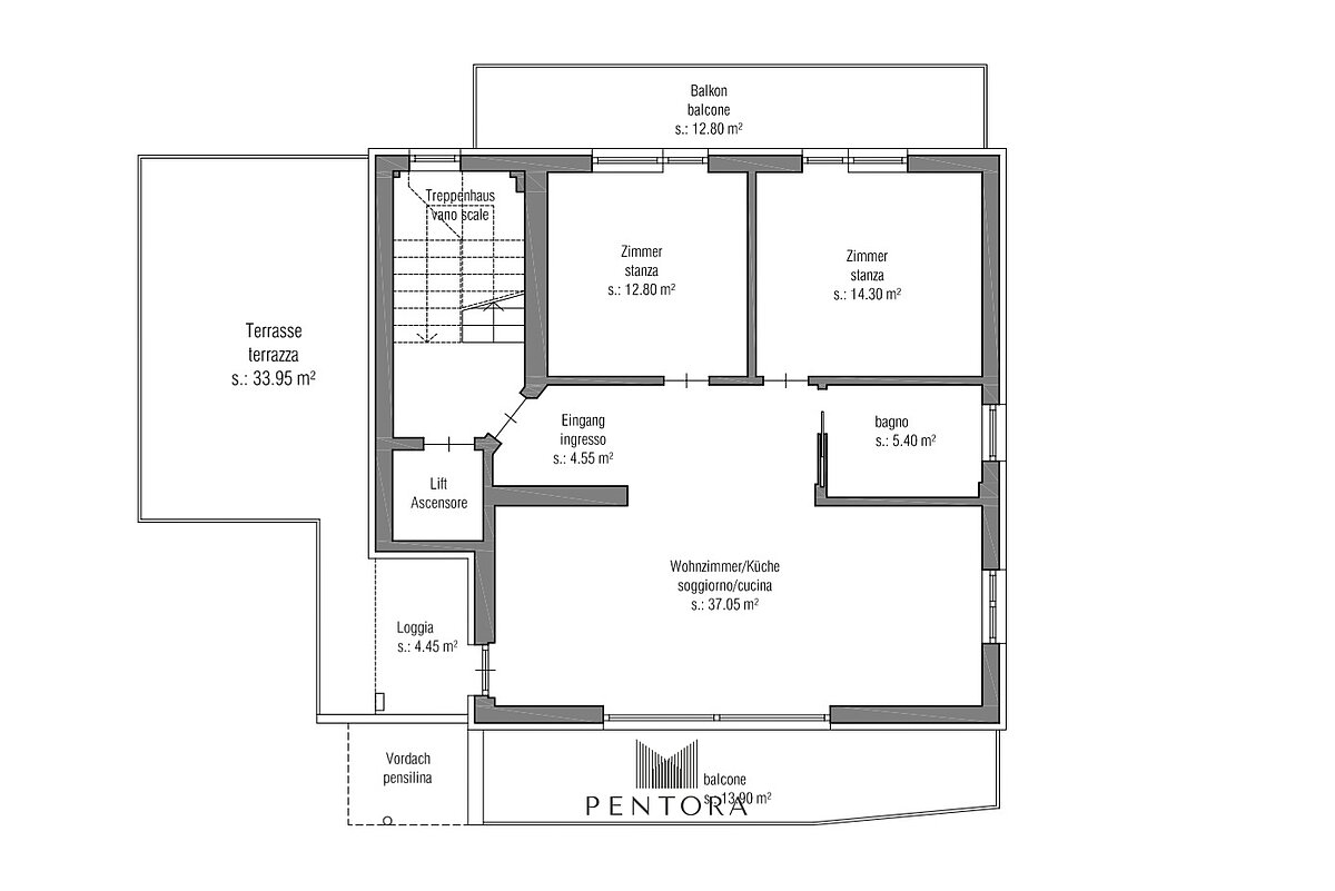 Terrasse/Loggia: ca. 34 m² + 4 m²