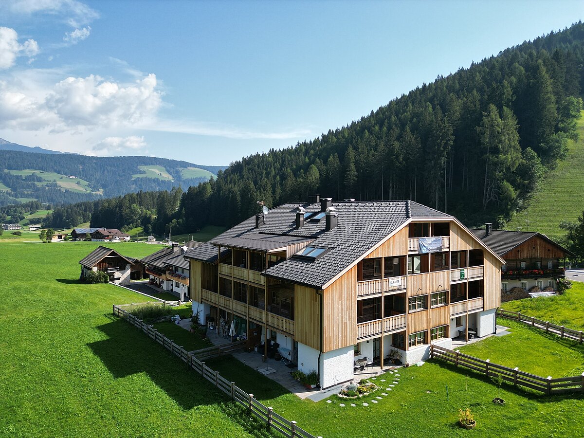 Bei diesem Projekt wurde in sonniger Lage von Prags ein traditioneller Bauernhof abgerissen und modern interpretiert wieder aufgebaut. Das Haus ist nun in 12 Wohneinheiten unterteilt. Die Fassade besteht aus Altholz des früheren Hofs.