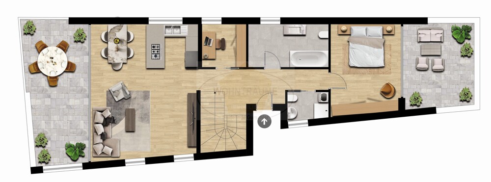 Diese großzügig geschnittene Immobilie kann auch nur für Ferienzwecke dienen, da sie keinerlei Bindungen unterliegt. Dieses Appartement besteht aus Zugangsbereich, Wohnküche mit herrlicher Südterrasse, Büro, geräumigem Badezimmer, Gäste-WC und Schlafzimmer mit grosser Terrasse. Dazu gehören noch ein Kellerabteil und zwei Garagenstellplätze im Tiefgeschoss des Gebäudes.