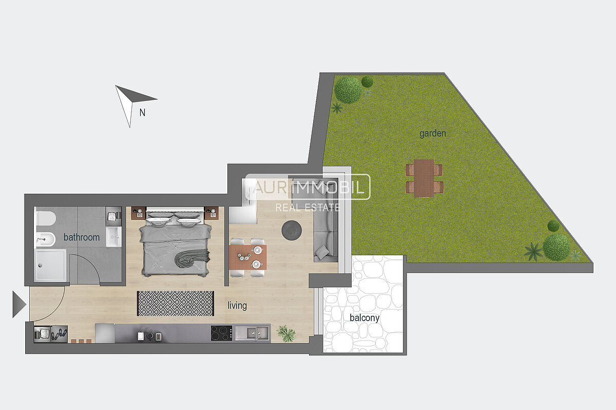 Großzügiges Studio mit durchdachter Raumaufteilung – ideal für Singles, junge Paare oder als Investition! Die Wohnung ist geräumig und funktional gestaltet, mit einer intelligenten Trennung von Wohn- und Schlafbereich – perfekt für Komfort und Privatsphäre. Sie besteht aus einem hellen Wohnraum mit Kochecke, einem Schlafbereich, einem Badezimmer und einem privaten Balkon.