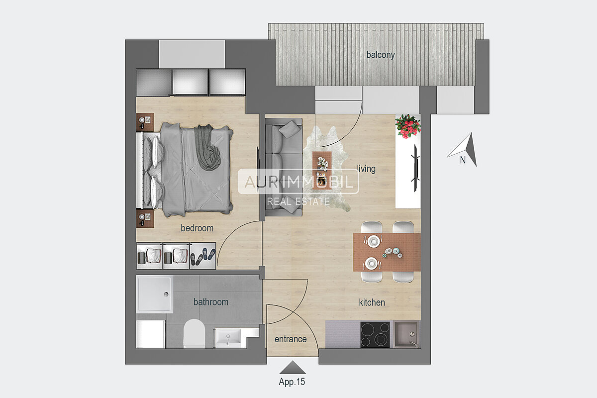 Diese Zweizimmerwohnung im zweiten Stock empfängt Sie mit einer warmen, funktionalen Atmosphäre. Die durchdachte Raumaufteilung mit offenem Wohnbereich, gemütlichem Schlafzimmer, Badezimmer und Balkon schafft den perfekten Rahmen für ein erstes eigenes Zuhause – praktisch, kompakt und zum Wohlfühlen.