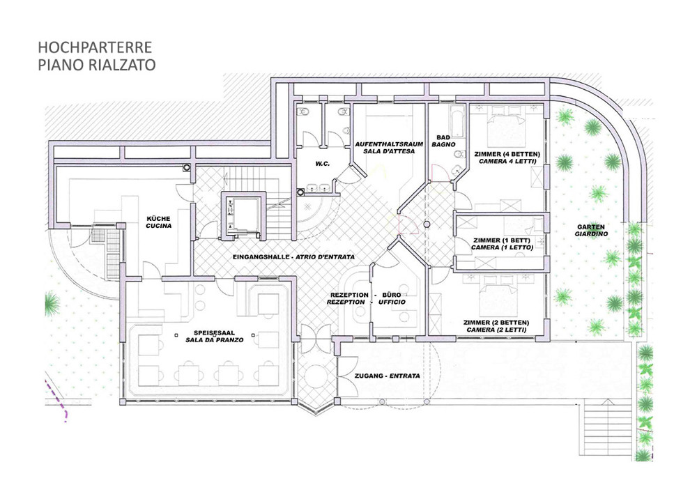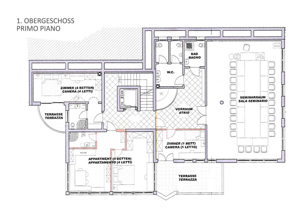 RAUMAUFTEILUNG: 4 Stockwerke, mit einer Bettenkapazität von