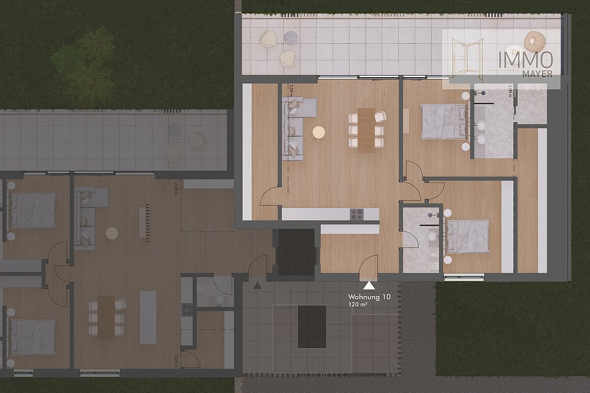 Ein Penthouse, das durch seine perfekte Raumaufteilung und das ruhige, hochwertige Architekturkonzept überzeugt. Bei diesem Neubau entstehen nur zehn Einheiten , hier genießen Sie eine exklusive Wohnatmosphäre in grüner Umgebung, zentrumsnah und doch angenehm zurückgezogen. Die erhöhte Lage des Hauses schenkt auch diesem Penthouse einen offenen Blick auf die Bergkulisse und eine besondere Lichtqualität. Der großzügige 4-Zimmer-Grundriss bietet klare Wohnzonen, viel Tageslicht und einen starken Bezug zu den weitläufigen Außenflächen. Die Terrasse wird zum privaten Aussichtspunkt über Meran. Große Hebeschiebetüren schaffen ein fließendes Raumgefühl zwischen Innen und Außen. Hochwertige Materialwahl ist selbstverständlich: Parkett, elegante Oberflächen und frostsichere Outdoor-Beläge; je nach Baufortschritt sind Individualisierungen noch möglich.