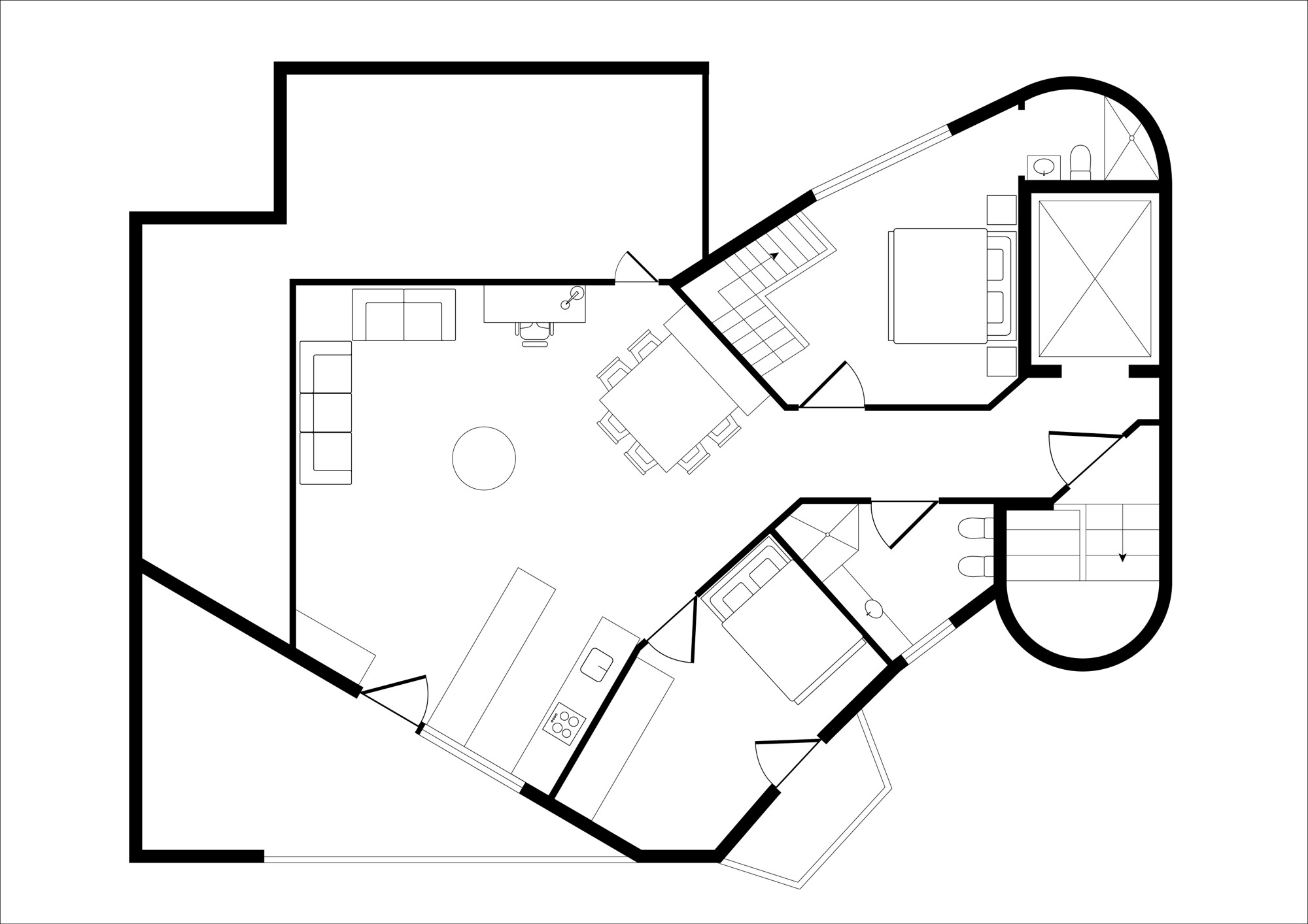 Die Raumaufteilung ist ideal für Paare oder Familien geeignet. Zwei Schlafzimmer, eines mit Mansarde und eigenem kleinem Badezimmer, das andere mit einem doppelten Stockbett und Zugang zum Balkon, bieten ausreichend Rückzugsfläche. Das zweite, größere Badezimmer dient gleichzeitig als Tages-WC.
