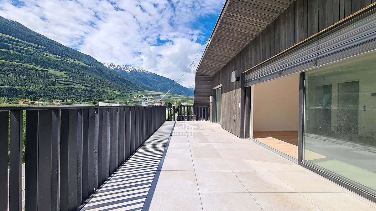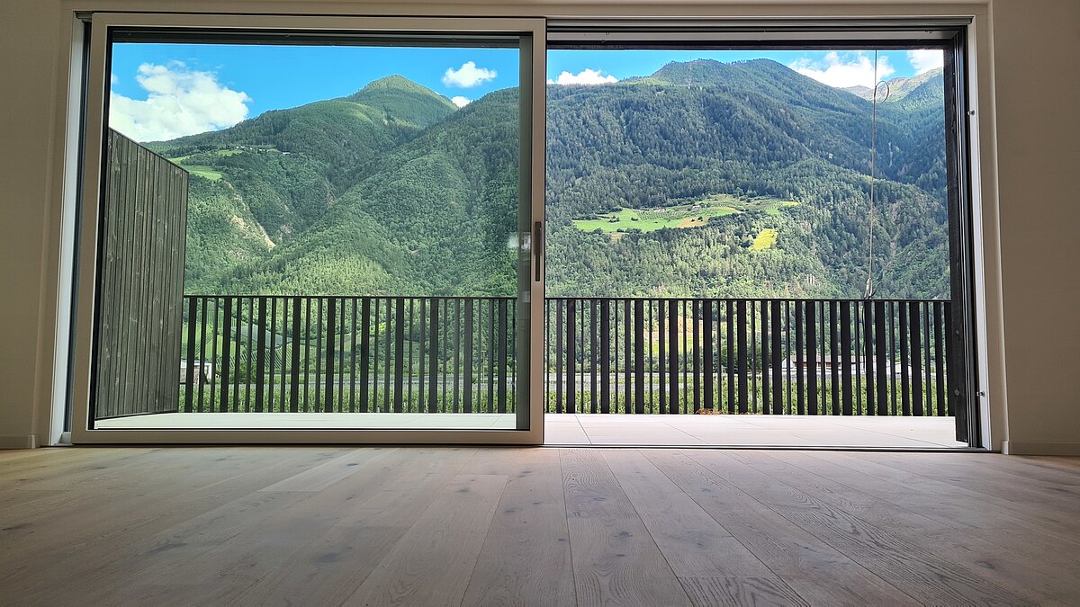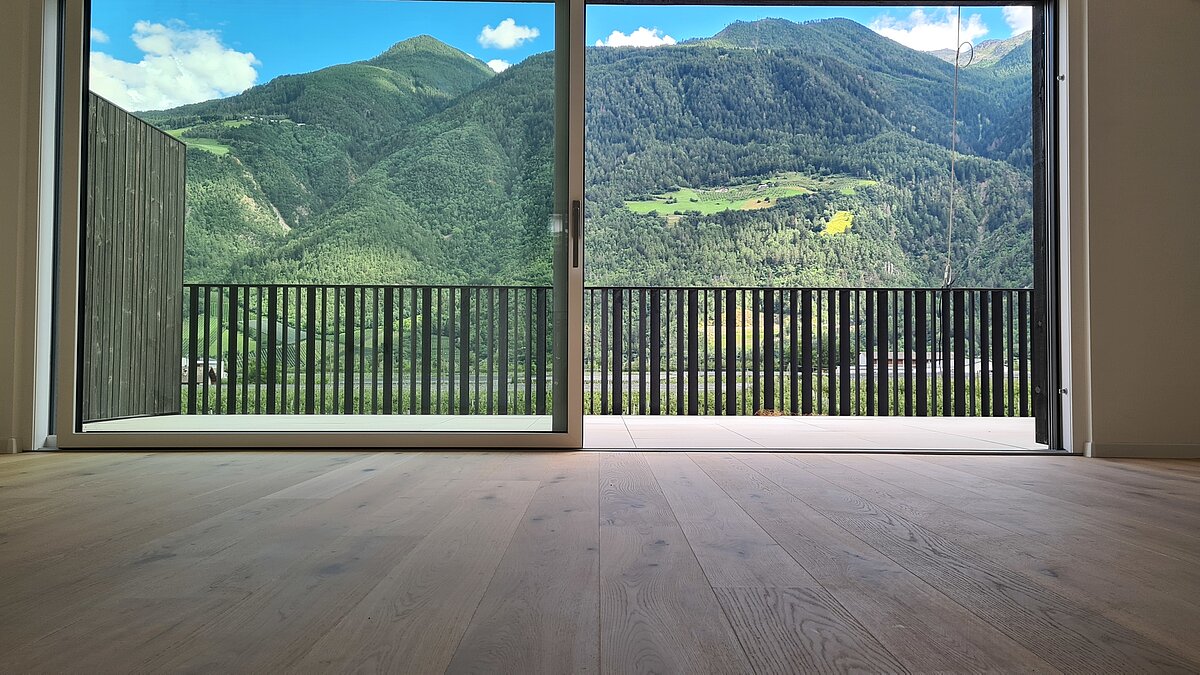 Große Terrasse: Genießen Sie Ihre private Terrasse mit unverbaubarer Aussicht auf die umliegende Natur und die Südtiroler Berge.