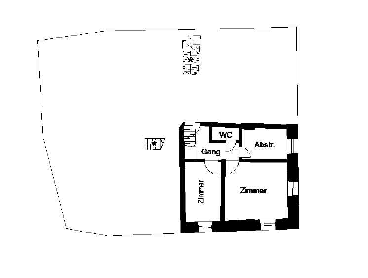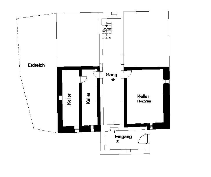 Das Wohnhaus ist mit dem Nachbarsgebäude zusammengebaut und besteht aus: