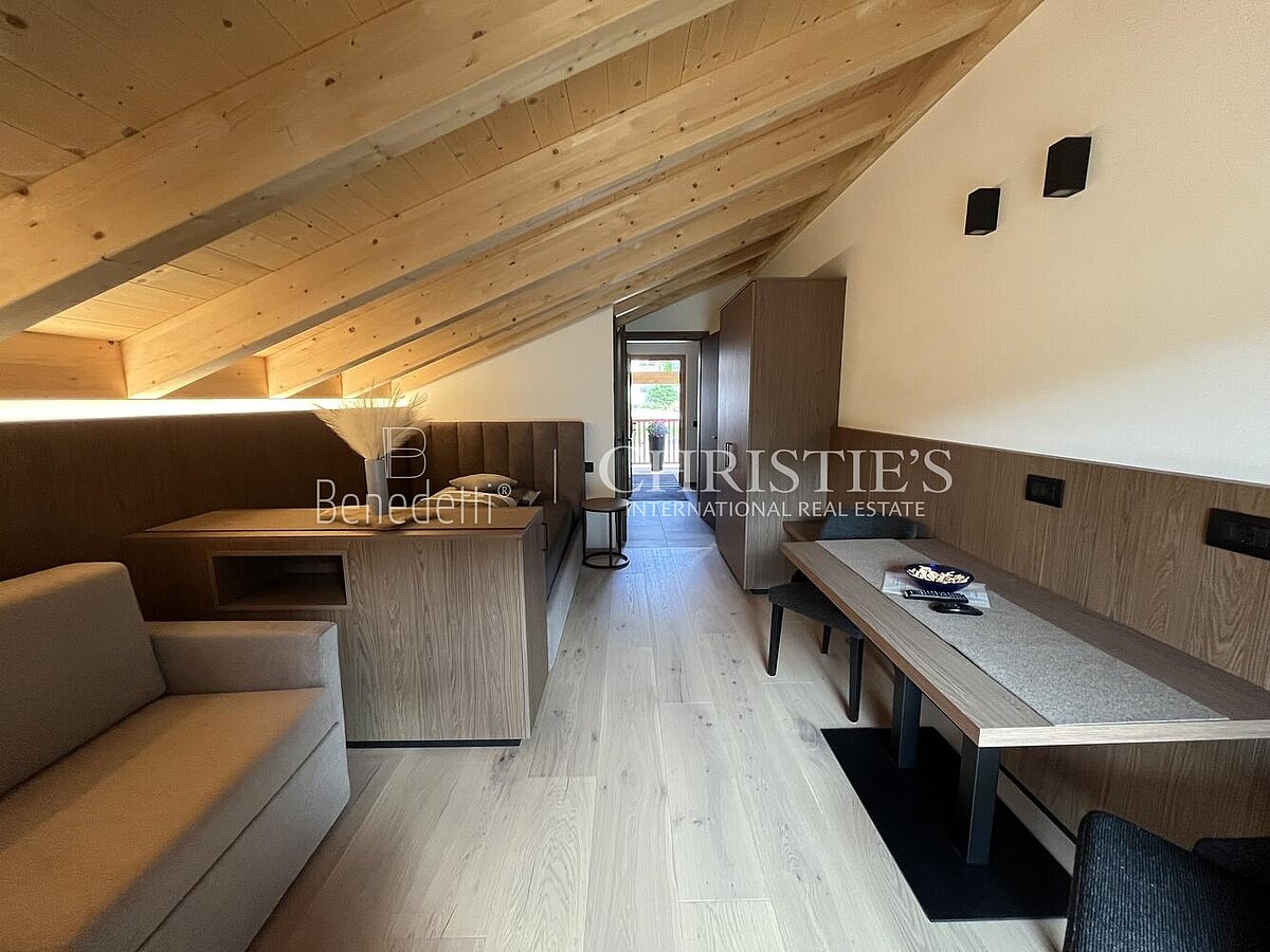 Dieses exklusive Penthouse in St. Leonhard bei Abtei repräsentiert ein modernes Juwel im Herzen der Dolomiten. Mit rund 100 m² Nettowohnfläche im zweiten Obergeschoss als Penthouse bietet es eine vollständige Möblierung sowie höchsten Komfort. Drei geräumige Schlafzimmer, drei moderne Bäder und ein großzügiges Wohnzimmer mit offener Küche schaffen ein ideales Ambiente für entspanntes Wohnen.