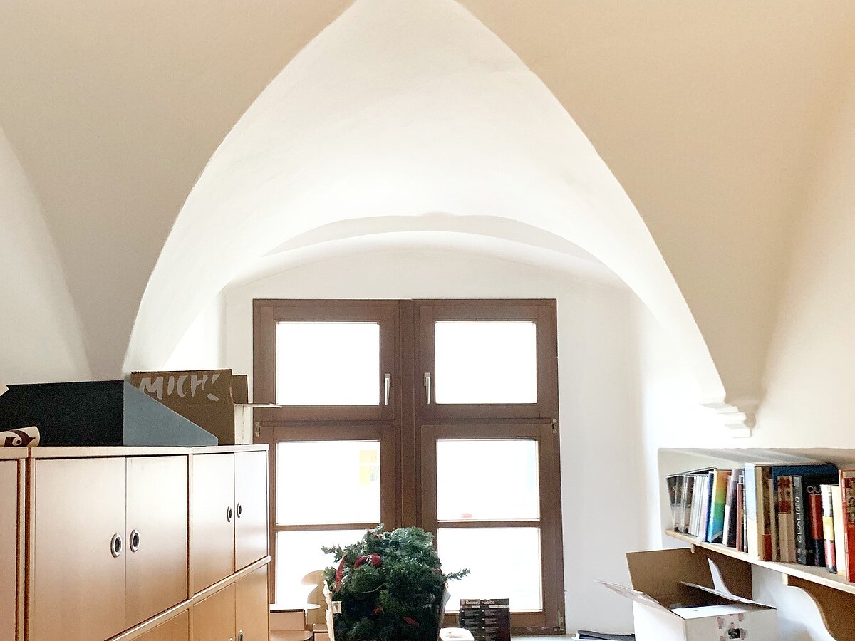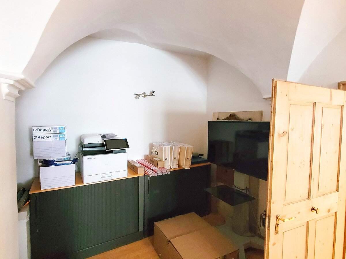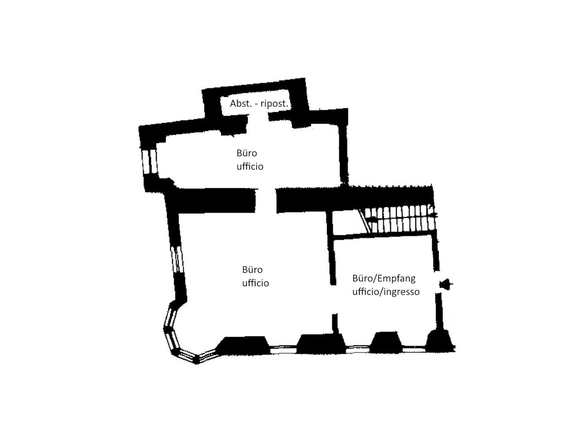 Die sanierte Einheit besteht aus einem Empfangsbereich, zwei Büroräumen (Erker!), Abstellraum. Das WC befindet sich am Gang.