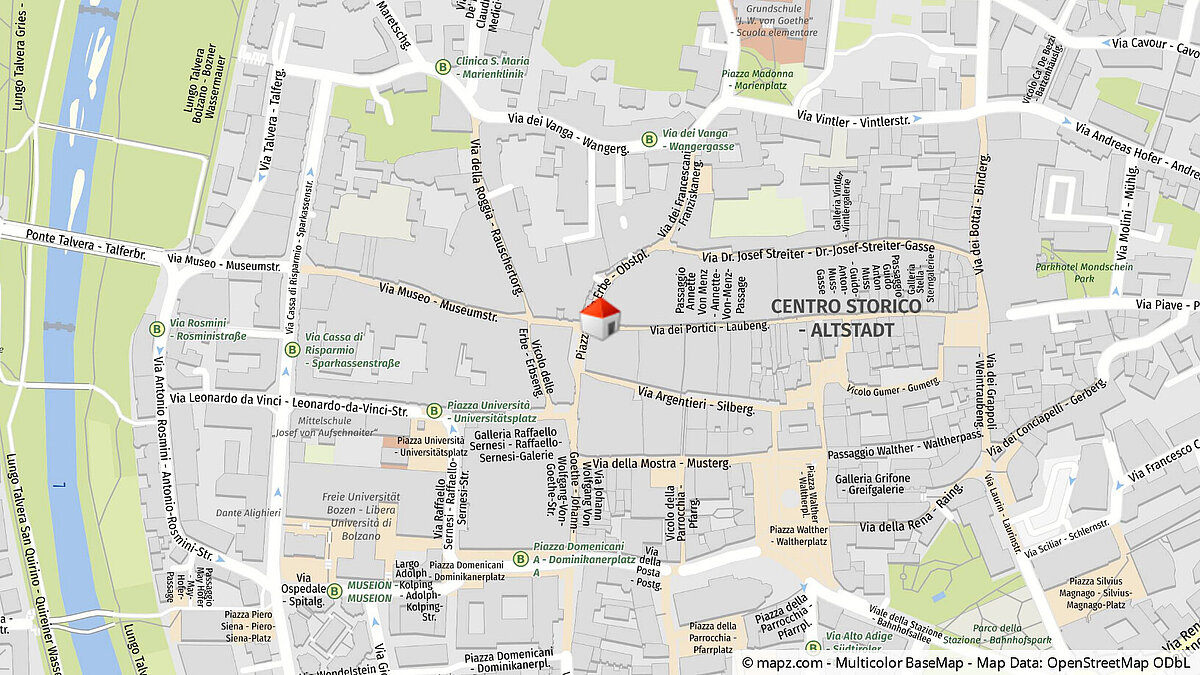 Nur wenige Schritte entfernt laden die berühmten Bozner Lauben zu einem Spaziergang unter historischen Arkaden ein. Hier verbinden sich mittelalterliche Architektur und modernes Shopping zu einem einzigartigen Erlebnis. Boutiquen, Cafés und traditionelle Geschäfte säumen die Laubengänge und machen sie zu einem Ort, an dem Geschichte lebendig bleibt.