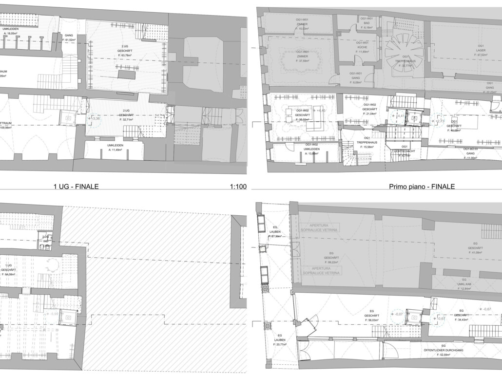 Das Geschäftslokal erstreckt sich über drei Ebenen mit einer Gesamtfläche von rund 320 m²: