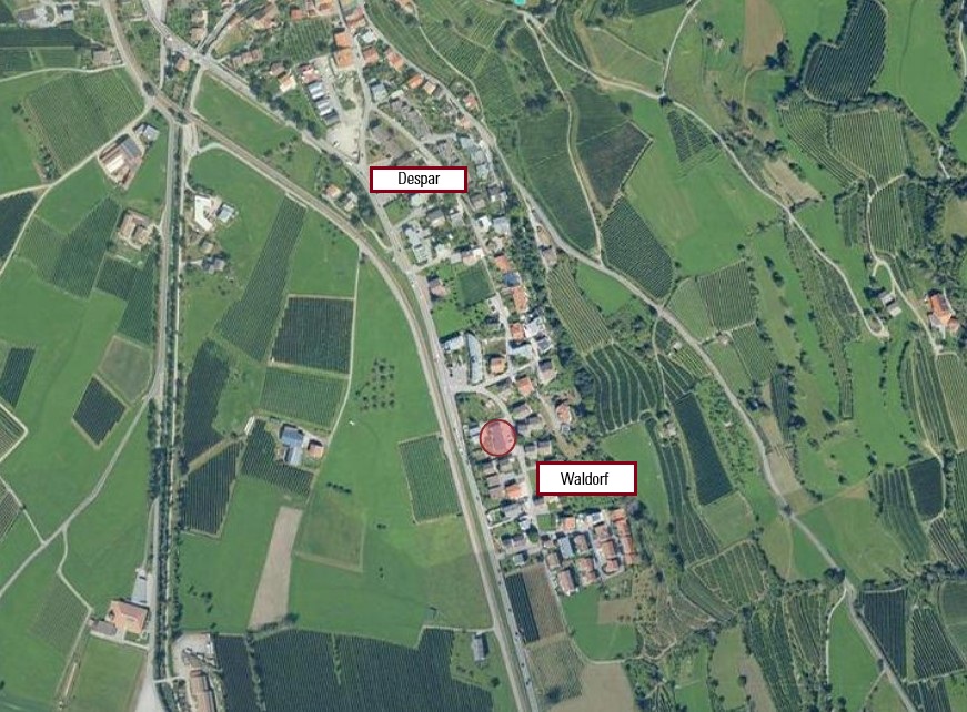 Die Immobilie befindet sich in einer ruhigen und dennoch zentralen Wohnlage von Schluderns.