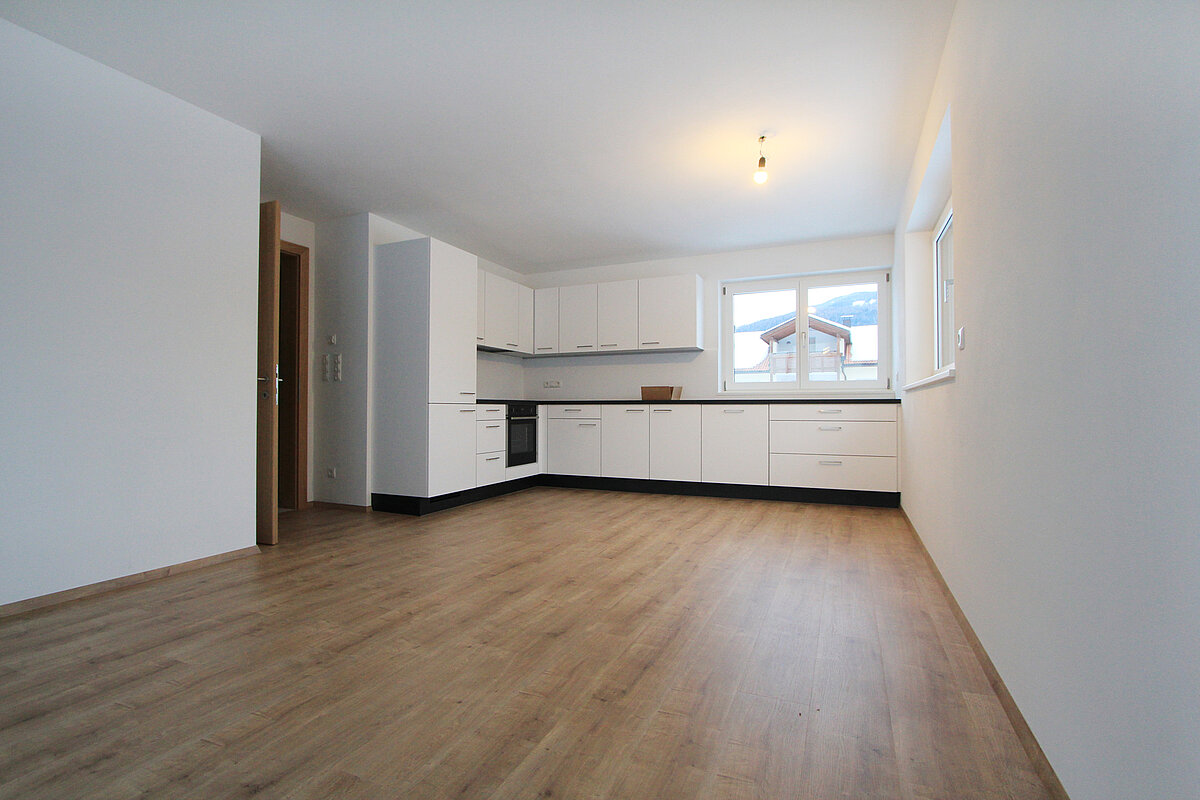 Die Wohnung besteht aus einem Gang, einer Wohnküche, zwei Schlafzimmern, einem Bad, einer Terrasse, einem Garten, einem Stellplatz im Freien, einem Stellplatz in der Garage und einem Keller. Das Haus wurde 2021 fertiggestellt.