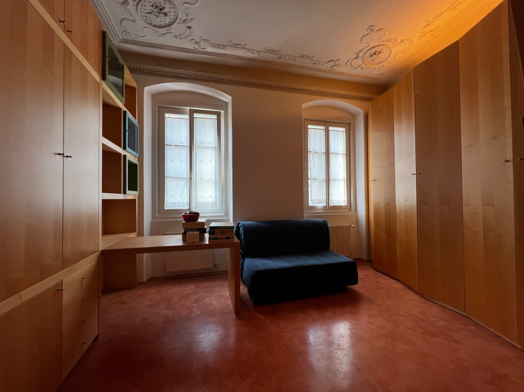 Zum Verkauf steht eine schöne, große Zweizimmerwohnung am Obstmarkt in Bozen. Es handelt sich hier um eine denkmalgeschützte Stadtwohnung, die mit hochwertigen Einbaumöbeln ausgestattet ist.