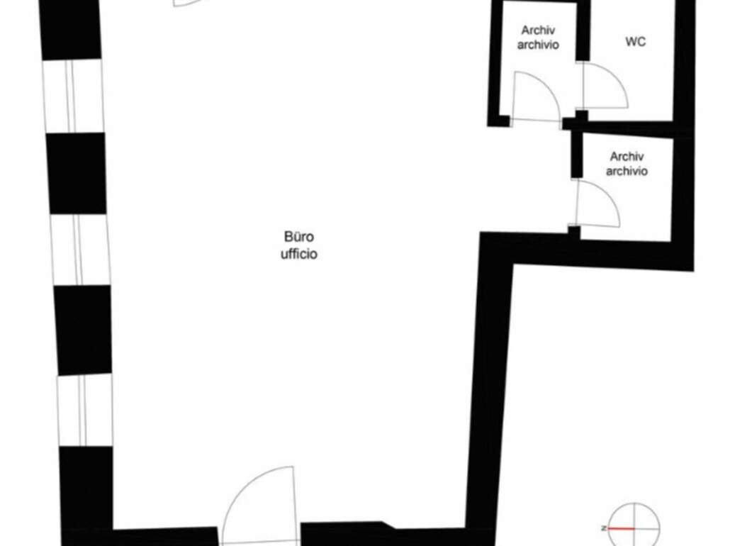 Die zum Verkauf stehende Einheit liegt im Erdgeschoss und ist barrierefrei zugänglich. Mit einer Handelsfläche von ca. 76 m² präsentiert sich die Liegenschaft in einem gepflegten und lichtdurchfluteten Zustand. Die Raumaufteilung umfasst einen einladenden Eingangsbereich, einen Büroraum, ein Archiv sowie ein Badezimmer und ein separates Tages-WC.