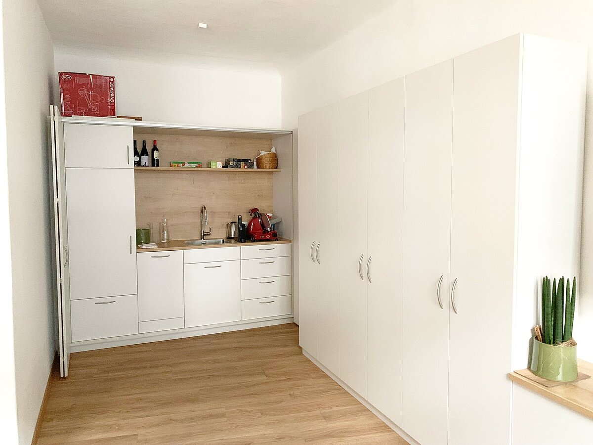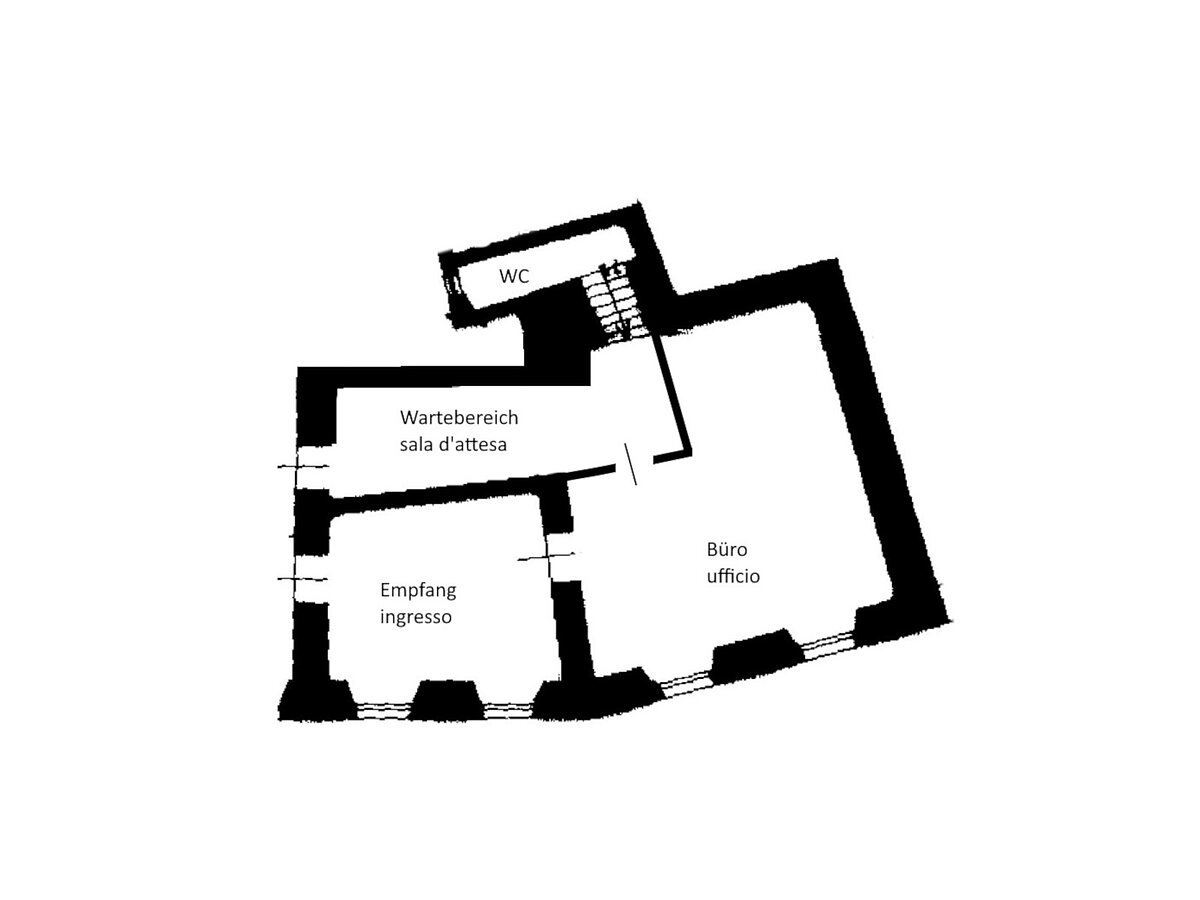 Die helle Einheit besteht aus Eingangsbereich/ Rezeption, Büro/ Besprechungsraum mit einer Ecke für die Kaffeepause, WC, und einem Wartesaal, der auch als Archiv genutzt werden kann.