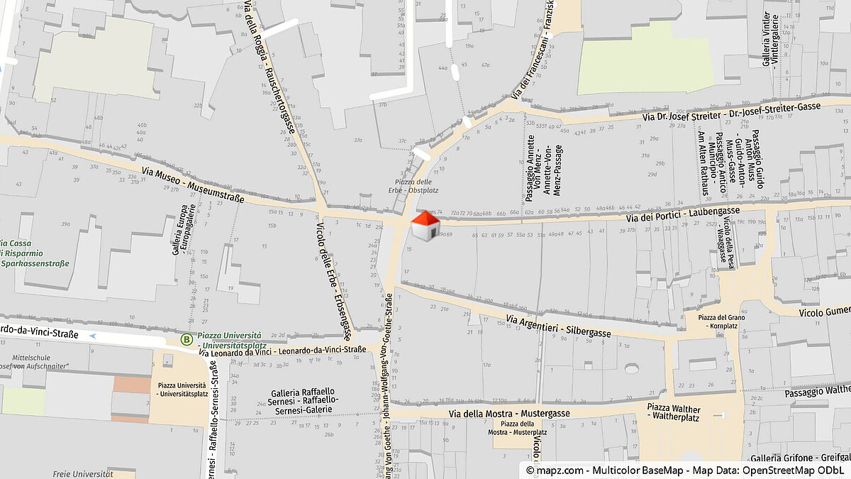 Direkt am traditionsreichen Obstmarkt und den berühmten Bozner Lauben erwartet Sie Ihr neues Mietbüro in bester Lage. Profitieren Sie von einer einzigartigen Kombination aus historischem Flair und urbaner Dynamik: umgeben von charmanten Arkaden, lebendigem Markttreiben und exklusiven Geschäften.
