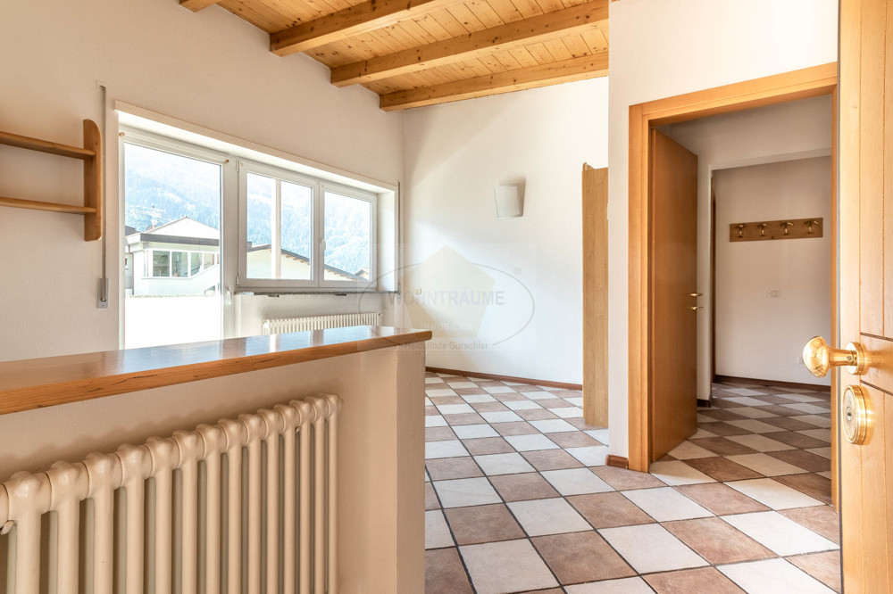 Diese sehr sonnige und gut erhaltene Dreizimmer-Mansardenwohnung befindet sich in Plaus, Feldweg, in ruhiger Wohngegend und besteht aus Diele, Küche, Wohnzimmer, 2 Schlafzimmern, Badezimmer mit Wanne und Fenster, großzügigem Südbalkon, Südterrasse vor dem Eingang der Wohnung und verfügt weiters über ein Kellerabteil und über eine abgeschlossene Garage.