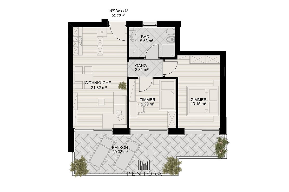 Ein echtes Highlight für Paare oder Alleinwohnende: Diese Wohnung mit ca. 52 m² Wohnfläche kombiniert modernen Stil mit hohem Komfort. Die großzügige Terrasse lädt zum Verweilen ein, während die sorgfältige Materialwahl für zeitlose Qualität sorgt. Perfekt für alle, die stilvoll wohnen möchten.
