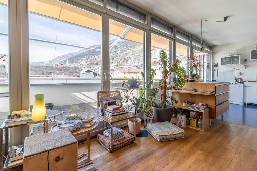 Diese sehr helle, großzügige und gemütliche Dreizimmerwohnung befindet sich im Dachgeschoss des Gebäudes im Zentrum in Schlanders, Fußgängerzone. Diese Mansardenwohnung besteht aus Diele, großzügiger Wohnküche mit herrlicher Süd-Westterrasse, zwei Schlafzimmern, Badezimmer, Tages-WC, Ostbalkon und Keller im Kellergeschoss. Aufzug ist im Hause vorhanden.