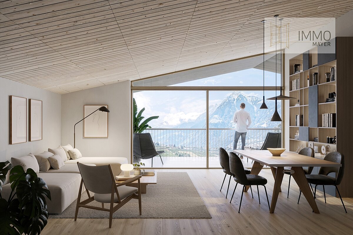 Zwischen Altstadt und Naherholung gelegen, befindet sich dieses neue Wohnprojekt im Meraner Stadtteil Obermais, einem der ältesten Wohnviertel der Stadt. Die ruhige Seitenstraße ist eingebettet in ein gepflegtes Umfeld, geprägt von Gärten und viel Grün. Die Wohnanlage entsteht etwas oberhalb der Straße, wodurch in jedem Stockwerk eine Aussicht auf die umliegende Berglandschaft gegeben ist. Gleichzeitig sorgt die Ausrichtung des Grundstücks für großzügige Privatgärten und eine offene, helle Wohnatmosphäre. Schulen, Nahversorger, Cafés und öffentliche Verkehrsmittel sind bequem zu Fuß oder mit dem Fahrrad erreichbar. Ein kurzer Spaziergang führt zur Passerpromenade und weiter in die Meraner Altstadt. Auch die Anbindung an die Hauptverkehrsachsen sowie an das Naherholungsgebiet Meran 2000 ist ideal.