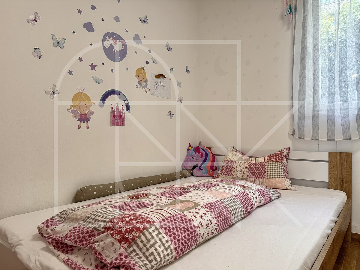 Das Hauptschlafzimmer mit begehbarem Kleiderschrank bietet viel Platz und Ruhe, während ein weiteres helles Zimmer individuell als Kinder-, Gäste- oder Arbeitszimmer genutzt werden kann. Das moderne Bad mit Fenster ist mit einer gemütlichen Badewanne ausgestattet und wird so zu Ihrer kleinen persönlichen Wohlfühloase.