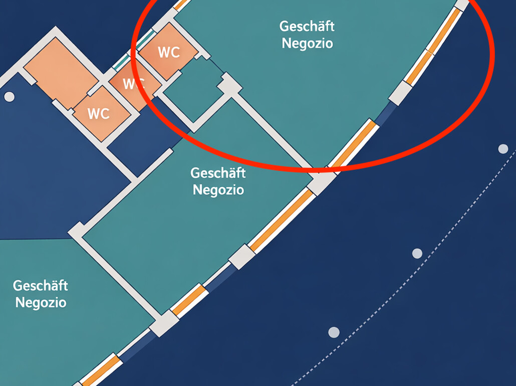 Die Lage überzeugt durch ihre sehr gute Sichtbarkeit sowie die starke Frequenz – sowohl durch Fußgänger als auch durch den Verkehr. Die zentrale Position in einem gewachsenen Stadtviertel mit umliegenden Büros, Dienstleistungsbetrieben und Wohnhäusern macht das Objekt besonders attraktiv.