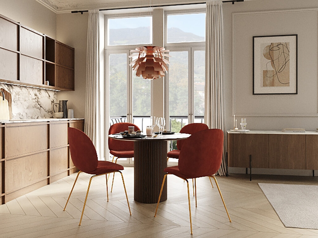 Natürliche Materialien schaffen ein angenehmes Wohngefühl, großzügige Fensterfronten sorgen für viel Licht in den Wohnräumen und tolle Ausblicke.