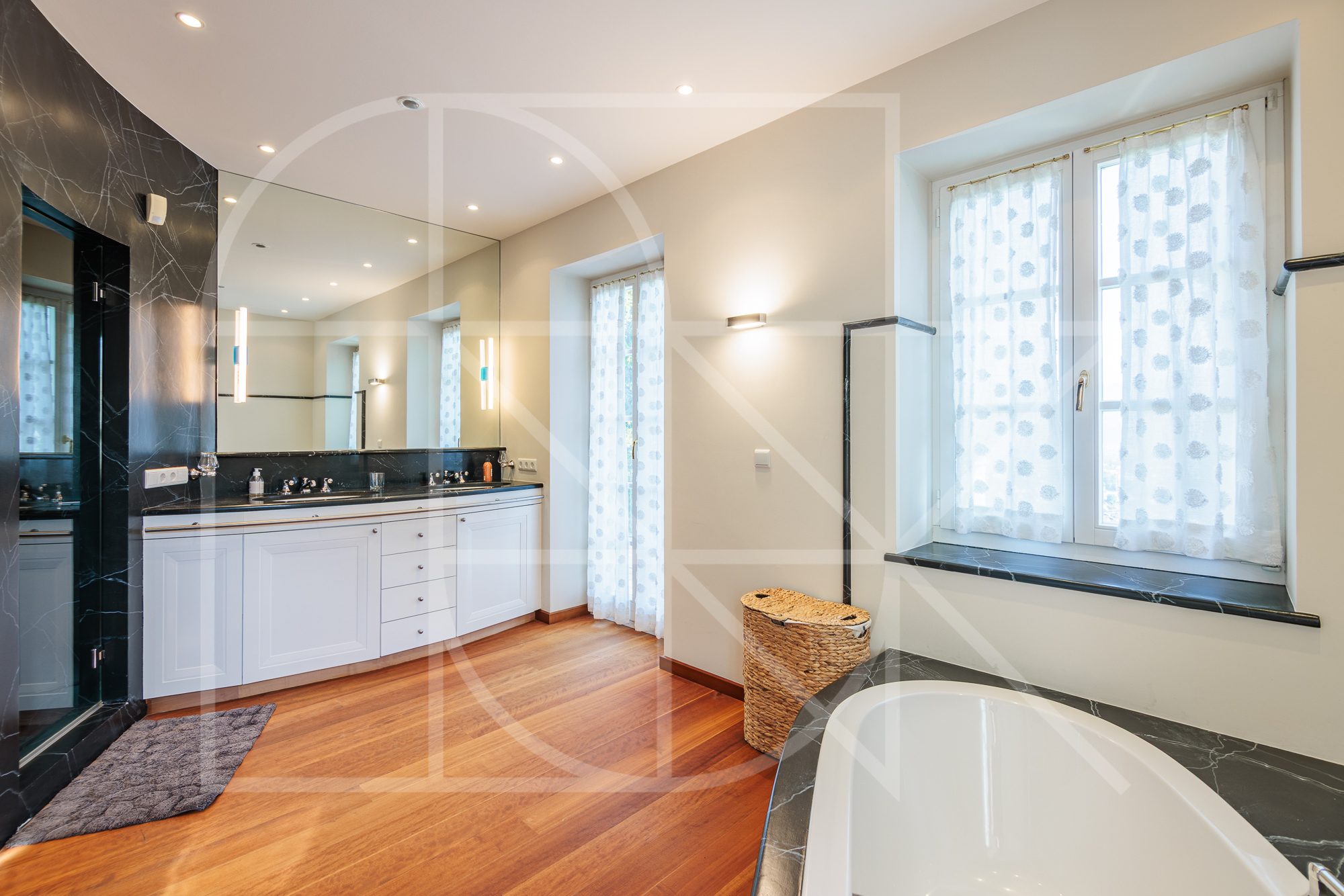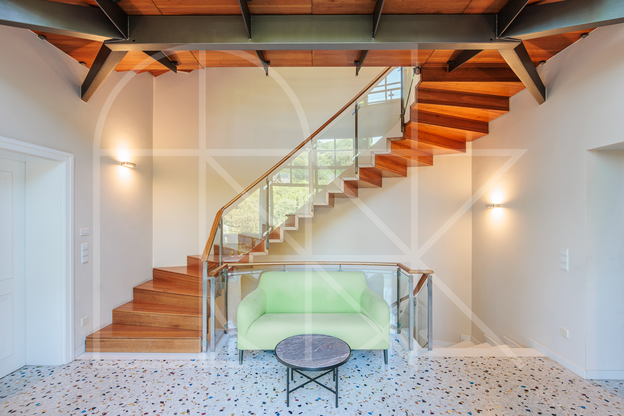 Durchdacht konzipiert präsentiert sich das Anwesen in zwei eigenständigen Einheiten: dem majestätischen Haupttrakt sowie einer eleganten Einheit im obersten Geschoss, die sowohl intern als auch über eine Außentreppe erreichbar ist – ideal für diskretes Wohnen, stilvolles Empfangen oder die perfekte Kombination aus Leben und Arbeiten.